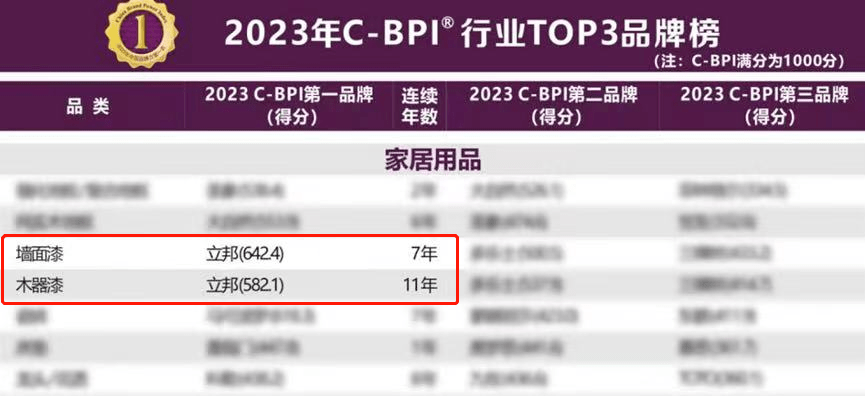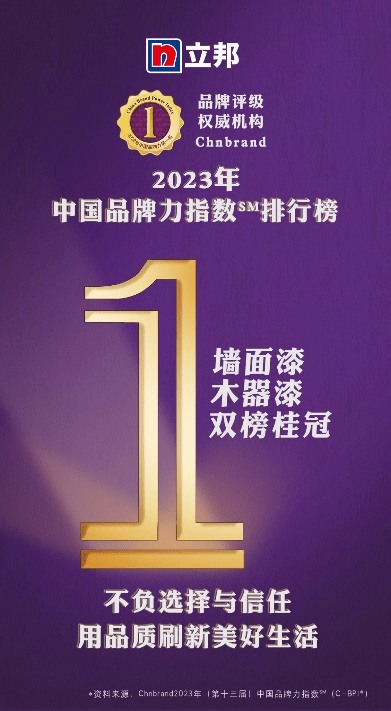 立邦墻面漆與木器漆斬獲2023年中國品牌力指數(shù)(C-BPI?)行業(yè)第一