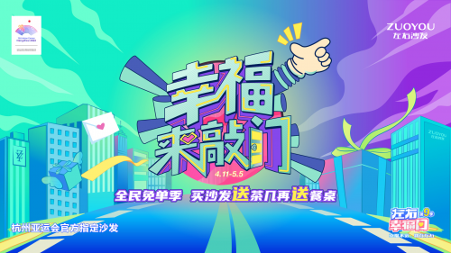 4月11日-5月5日,正式成為杭州亞運(yùn)會(huì)官方供應(yīng)商的左右家居推出一系列幸?;仞亜?dòng)作,為左右沙發(fā)幸福用戶送上驚喜好禮,再次點(diǎn)燃「423左右幸福日」熱潮。今年迎來(lái)「423左右幸福日」第9季,左右沙發(fā)以#423左右幸福日?幸福來(lái)敲門(mén)#為主題,推出全民免單季,買(mǎi)沙發(fā)送茶幾再送餐桌等優(yōu)惠大促活動(dòng),還邀請(qǐng)到423位幸福用戶分享微笑幸福故事,攜手五位體育冠軍「幸福來(lái)敲門(mén)」,為其中5位幸運(yùn)兒送上幸福驚喜,共同為左右沙發(fā)的幸福用戶們開(kāi)啟一場(chǎng)幸福優(yōu)惠之旅。