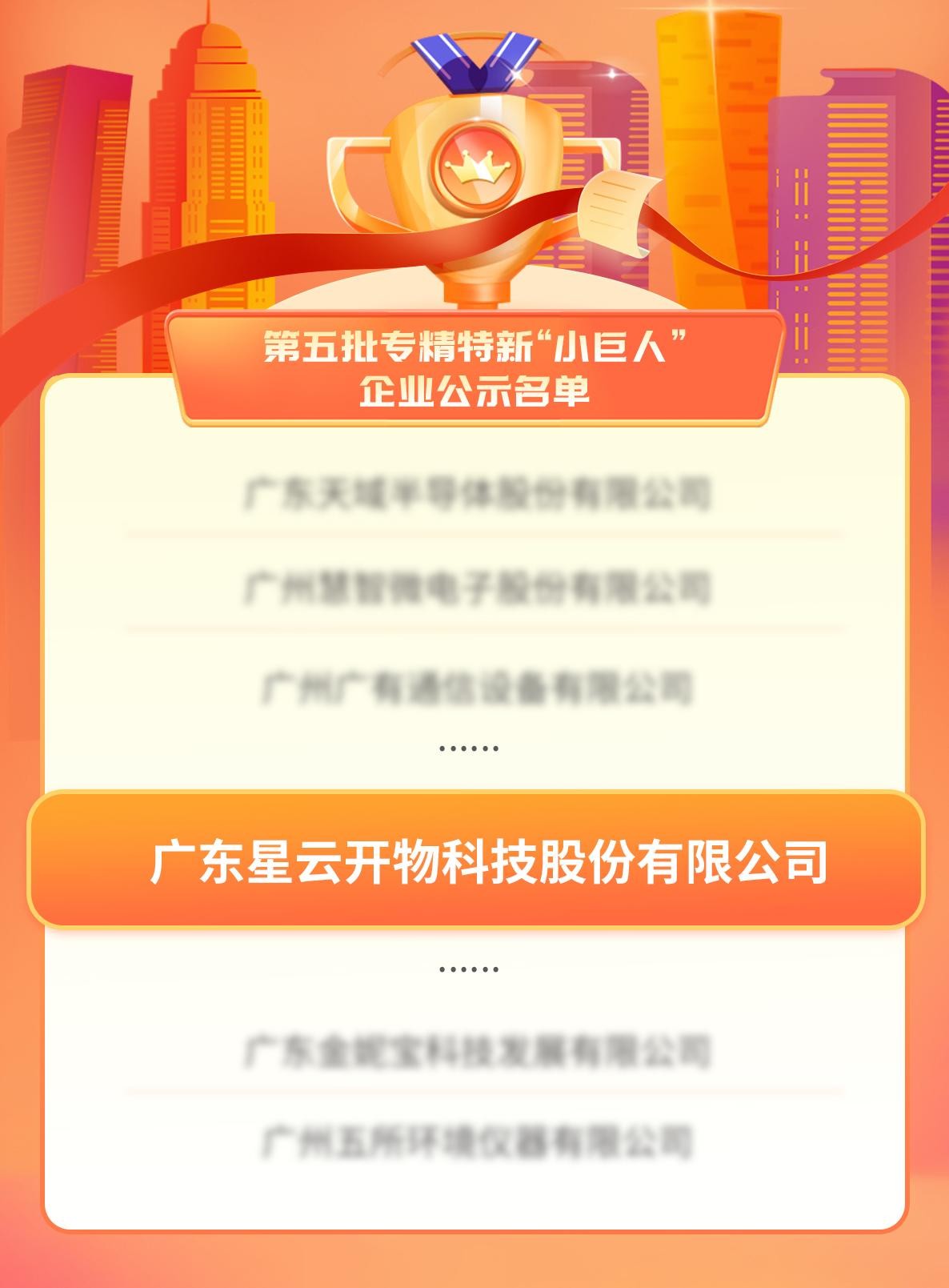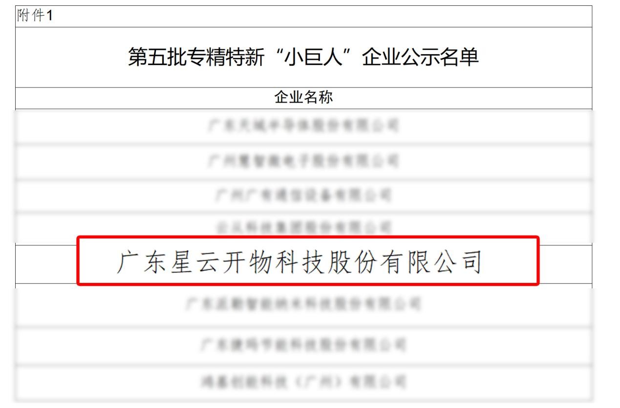 ? ? 7月14日,國(guó)家工信部發(fā)布了《關(guān)于廣東省第五批專精特新“小巨人”企業(yè)和第二批專精特新“小巨人”復(fù)核通過(guò)企業(yè)名單的公示》,廣東「星云開(kāi)物」科技股份有限公司以優(yōu)異的綜合實(shí)力成功入選,榮列2023年國(guó)家級(jí)第五批專精特新“小巨人”企業(yè)公示名單。