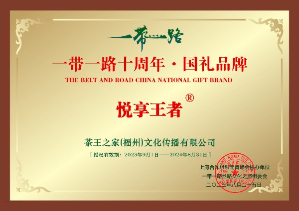 這次活動,由上海合作組織元首峰會、一帶一路絲路文化之旅組委會發(fā)起,旨在從各主要行業(yè)領域中,推選出具有代表性及良好用戶口碑的品牌及產品。“悅享王者”憑借其良好的理念定位、品牌形象、價值訴求以及“中國茶?世界語”的品牌情感共融,打動了所有評委,成功入選“一帶一路十周年?國禮品牌”。