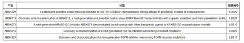 其中包括其自主研發(fā)的已獲中美雙突破性療法認定 的CSF-1R抑制劑Pimicotinib(ABSK021) 和可能成為best-in-class的新一代克服耐藥突變的EGFR Exon20抑制劑ABSK112 ,以及新一代克服耐藥突變的FGFR4 抑制劑ABSK012和FGFR抑制劑ABSK121,新一代KRAS抑制劑ABSK071的最新臨床前和轉(zhuǎn)化醫(yī)學(xué)研究進展。