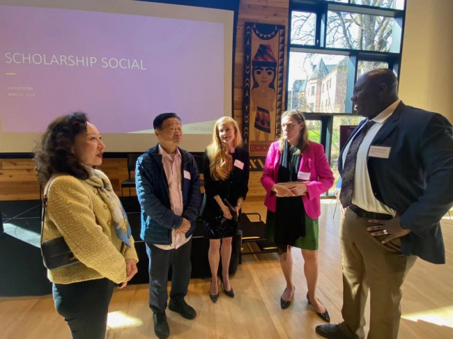 2023年4月25日,華盛頓大學(xué)醫(yī)學(xué)院舉辦獎學(xué)金捐贈人答謝酒會,華大醫(yī)學(xué)院以及華大醫(yī)院代理院長Timothy Dellit博士、華大醫(yī)學(xué)院副院長Gerald Tolbert博士、華大醫(yī)學(xué)院校友會前任會長Pam Yung博士等出席酒會并致辭,華大醫(yī)學(xué)院獎學(xué)金的受贈人代表分享了他們獲得獎學(xué)金資助如何改變了他們的學(xué)業(yè)和人生。華盛頓大學(xué)醫(yī)學(xué)院的師生、獎學(xué)金捐贈人等近百人參加了酒會。作為華大醫(yī)學(xué)院獎學(xué)金的贊助商,505集團(tuán)公司總裁、中美加友好協(xié)會主席來輝武教授受邀參加了這次酒會,并與華大醫(yī)學(xué)院師生親切交流。