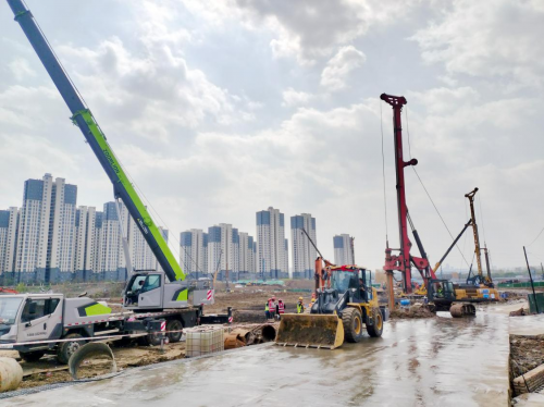 截至目前,項(xiàng)目前期四證已辦理完成,臨時(shí)用水接駁施工、圍擋施工、沖洗平臺(tái)搭建、臨電供電配置、支護(hù)樁及工程樁施工已基本完成,目前正在進(jìn)行主樓土方開(kāi)挖和塔吊安裝工作。