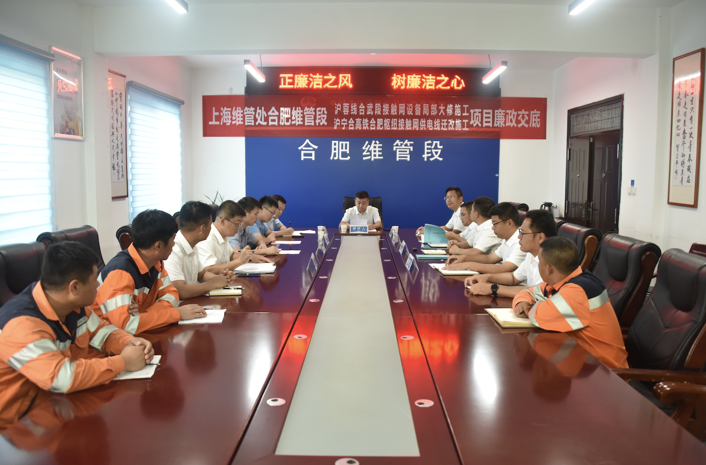8月24日上午,中國(guó)中鐵電氣化局運(yùn)管公司上海維管處合肥維管段對(duì)合肥維管段滬蓉線合武段接觸網(wǎng)設(shè)備局部大修施工項(xiàng)目和滬寧合高鐵合肥樞紐接觸網(wǎng)供電線遷改施工項(xiàng)目進(jìn)行黨風(fēng)廉政交底。單位各級(jí)領(lǐng)導(dǎo)和工程項(xiàng)目關(guān)鍵崗位人員共計(jì)19人參加廉政交底會(huì)議。