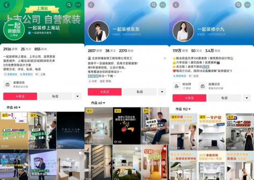 因此,在確定了以解決業(yè)主在家裝過程中的痛點(diǎn)問題為主要目標(biāo)后,一起裝修網(wǎng)在抖音搭建了多城市、針對(duì)細(xì)分賽道、具有不同人設(shè)風(fēng)格的IP賬號(hào)矩陣,同時(shí)進(jìn)行矩陣差異化運(yùn)營(yíng)。