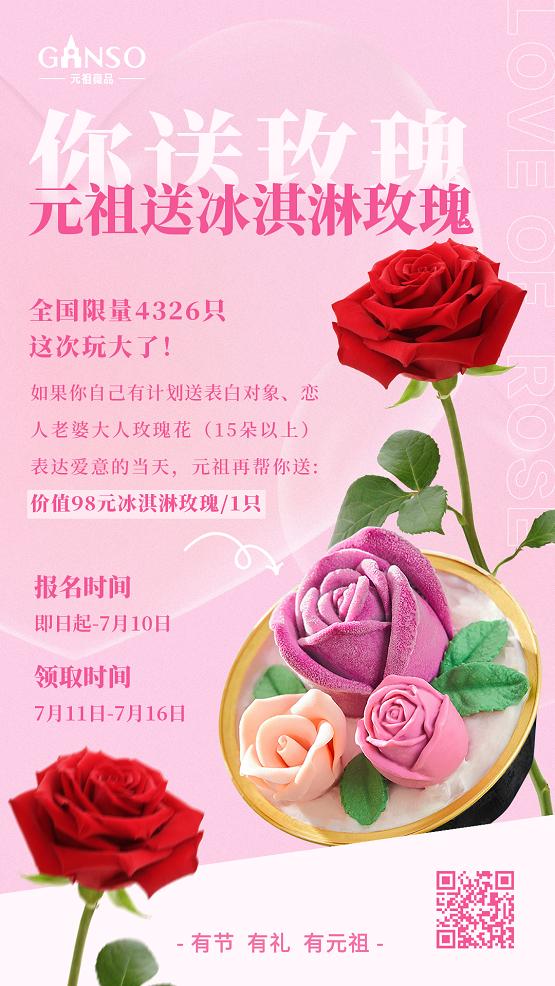 你送玫瑰,元祖送冰淇淋玫瑰,全國限量4326只!如果你有計(jì)劃送表白對象、戀人、妻子玫瑰花(15朵以上)表達(dá)愛意,元祖當(dāng)天再幫你送價值98元冰淇淋玫瑰。此活動一經(jīng)發(fā)布,元祖粉絲紛紛報(bào)名參與,迅速在社交媒體上掀起了一股“浪漫熱潮”!