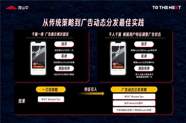 ▎閱讀行業(yè):?為避免過(guò)往千篇一律的廣告展示影響用戶體驗(yàn),穿山甲基于GroMore獨(dú)特的用戶價(jià)值分組能力,借助用戶所看書(shū)籍類(lèi)型、閱讀速度、在線時(shí)長(zhǎng)、累計(jì)觀看廣告數(shù)量等不同參數(shù),為開(kāi)發(fā)者建立了一套用戶分層策略。通過(guò)“廣告動(dòng)態(tài)分發(fā)”,根據(jù)用戶特征及時(shí)調(diào)整廣告狀態(tài),在不影響用戶留存的情況下進(jìn)一步提升廣告arpu,實(shí)現(xiàn)LTV最大化。