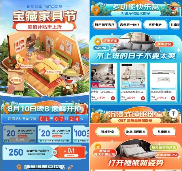 為了滿足“輕改大隊”的煥家需求,8月10日晚8點,京東寶藏家具節(jié)全面開啟,打出“即刻煥新 ‘家’點新意”的消費主張,聯(lián)合芝華仕、喜臨門、顧家家居、雅蘭、樂歌、源氏木語等家具大牌構(gòu)建多功能快樂窩、沉浸式睡眠臥室、氛圍感電競房、智能陽臺、兒童學(xué)習(xí)區(qū)等多趨勢場景,并聚焦年輕人鐘愛的奶油風(fēng)、原木風(fēng)、侘寂風(fēng)等高顏值風(fēng)格,奉上眾多能讓生活增加新鮮感的寶藏家具好物。想要和李女士夫婦一樣,在不拆墻體的情況下,通過添置家具單品來極速煥新家的消費者,可以從中找找靈感,并選購心儀的寶藏家具。