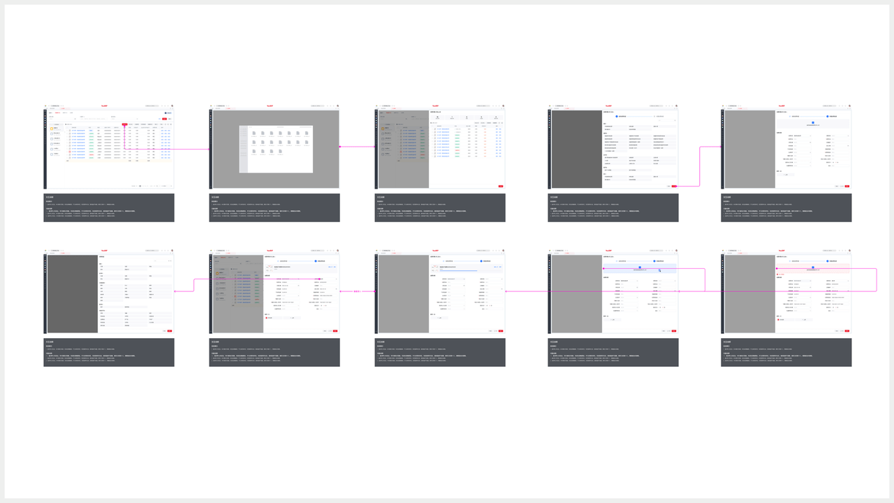 “我們現(xiàn)在做的主要偏向B端用戶(hù)旅程的一些設(shè)計(jì),設(shè)計(jì)圍繞整個(gè)用戶(hù)旅程進(jìn)行管理,設(shè)計(jì)重點(diǎn)聚焦在流程以及場(chǎng)景的閉環(huán)上。交互流程往往比較復(fù)雜,一個(gè)任務(wù)流有不同場(chǎng)景,每個(gè)場(chǎng)景都需要標(biāo)記清晰。”楊友彬強(qiáng)調(diào)道:“這是咱們這個(gè)行業(yè)獨(dú)特的一個(gè)點(diǎn),因?yàn)榱鞒潭?#xff0c;所以更需要設(shè)計(jì)圖嚴(yán)謹(jǐn)、具備邏輯。”