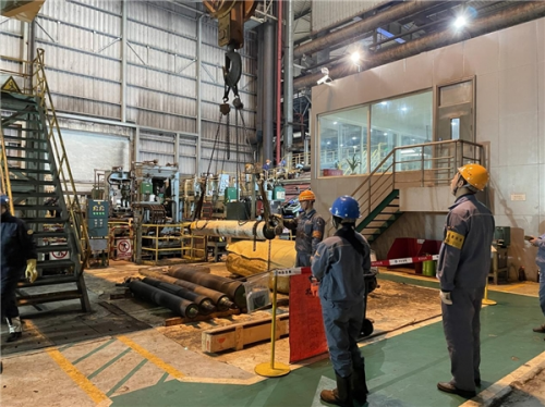 專、研在這里,抓住重點迎難而上,這次定修中有好多項目首次碰到,對這些史無前例的吊運作業(yè),精心組織、周密部署、根據(jù)各機組的空間結(jié)構(gòu)制定的吊運方案,尤其是3#CGL熱鍍鋅C808機組鋅鍋技改項目增加鋅鍋感應(yīng)加熱器線圈套裝任務(wù),中冶寶鋼基層單位認真梳理吊裝成功的經(jīng)驗,大膽創(chuàng)新,建議施工方采用三級指揮方式進行指揮吊裝作業(yè),并使用專業(yè)工具橋架直接吊運,兩端使用麻繩做牽引固定,從C808機組9層平臺至上而下,省略了諸多中間環(huán)節(jié),打破崗位壁壘的束縛,僅僅只用了一個晝夜的時間,鋅鍋感應(yīng)加熱器線圈順利吊裝就位。比原定計劃提前了一天時間。
