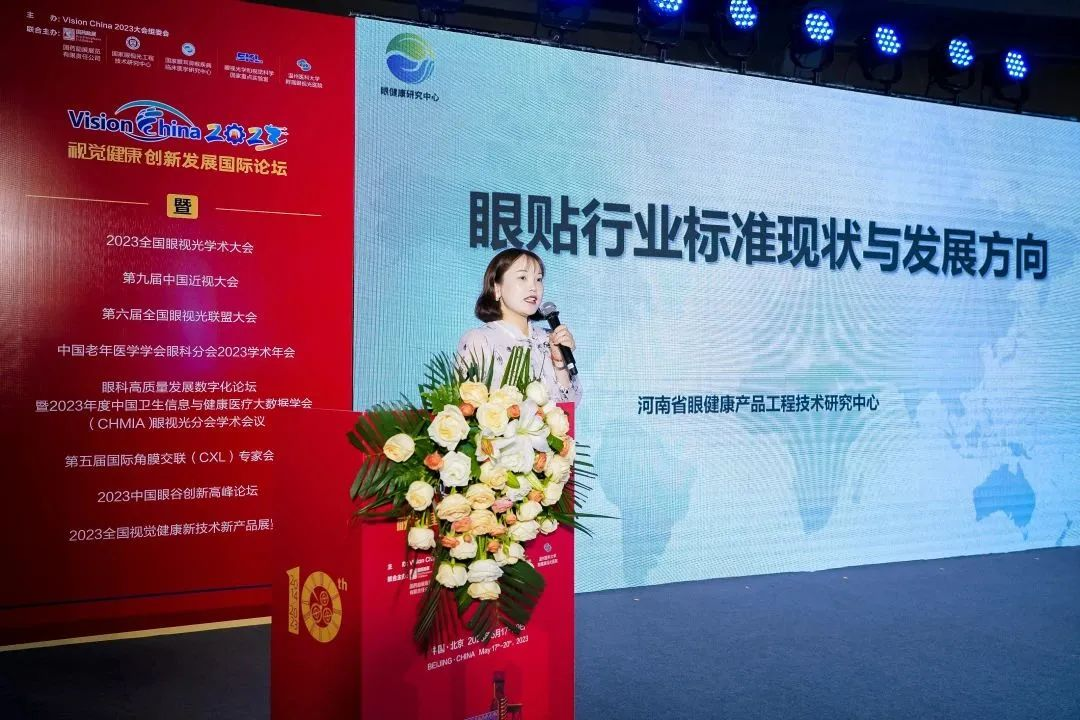 河南省眼健康產(chǎn)品工程技術(shù)研究中心曹萌雅主任在會議現(xiàn)場分享了《眼貼行業(yè)標(biāo)準(zhǔn)現(xiàn)狀與發(fā)展方向》,她在會中講到:
