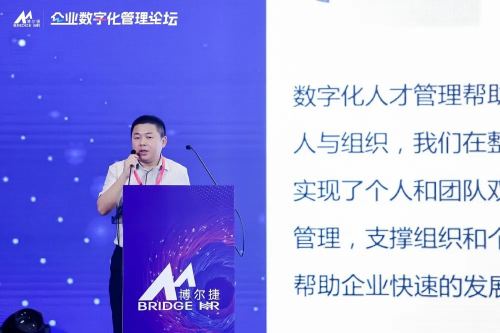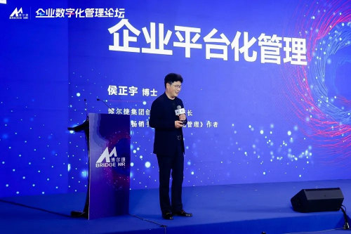 侯博士以2019年與中歐國際工商學院的忻榕教授、阿里巴巴產(chǎn)業(yè)互聯(lián)網(wǎng)中心主任陳威如教授歷經(jīng)兩年共同創(chuàng)作的《平臺化管理》一書作為理論指導,以及多年人力資源行業(yè)經(jīng)驗的沉淀和敏銳的市場洞察,總結(jié)構(gòu)建平臺化企業(yè)的重要性,包括小前端、強中臺和穩(wěn)后臺的建設(shè)。侯博士介紹了平臺化管理的五化模型:能力數(shù)字化、關(guān)系數(shù)字化、績效顆?;?、結(jié)構(gòu)柔性化、以及文化利他化。侯博士分享了博爾捷集團的成功經(jīng)驗,鼓勵其他企業(yè)在探索和實踐中進行數(shù)字化轉(zhuǎn)型和組織變革,以實現(xiàn)平臺化管理。