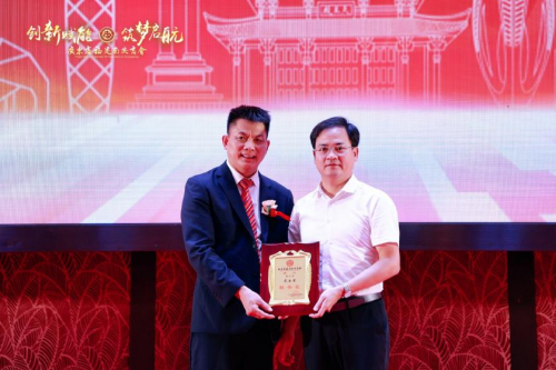 南安市委統(tǒng)戰(zhàn)部副部長、市工商聯(lián)黨組書記黃保林為執(zhí)行會長兼秘書長戴金星授牌