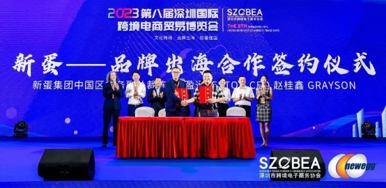 本次大會期間,新蛋集團分別與VANTRUE聯(lián)合創(chuàng)始人陳劍 George,盈通Yeston CEO趙桂鑫Grayson,公牛集團跨境電商出口業(yè)務總監(jiān)易恬3位企業(yè)代表簽訂業(yè)務合作協(xié)議,共謀未來深圳跨境電商出口新發(fā)展藍圖,搭建中國產(chǎn)業(yè)互聯(lián)互通的橋梁。