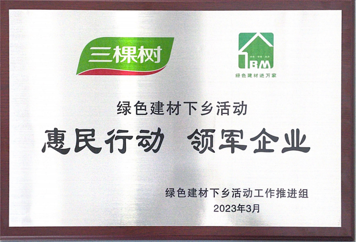 3月31日,以“綠色建材進(jìn)萬家 美好生活共創(chuàng)建”為主題的全國綠色建材下鄉(xiāng)活動福建站啟動會在泉州南安舉行。三棵樹憑借綠色建材下鄉(xiāng)方面的突出貢獻(xiàn)獲得“綠色建材下鄉(xiāng)活動-惠民行動領(lǐng)軍企業(yè)”稱號,多款綠色產(chǎn)品獲得中國綠色建材產(chǎn)品認(rèn)證證書。