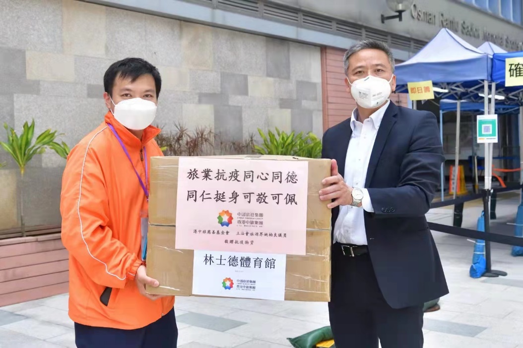 立法會旅游界議員姚柏良(左二)向旅游業(yè)抗疫前線人員贈送抗疫物資。(受訪者供圖)
