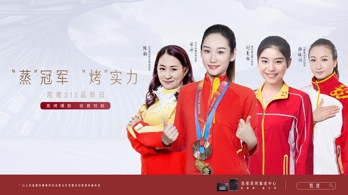 要買專業(yè)蒸烤,就選凱度電器。此次凱度315品質(zhì)日,北京奧運射擊冠軍陳穎、倫敦奧運擊劍冠軍駱曉娟、里約奧運跳水冠軍劉蕙瑕、藝術(shù)體操世界冠軍朱丹4位體壇冠軍聯(lián)合推薦凱度電器,正面詮釋了凱度的冠軍精神和冠軍品質(zhì)。