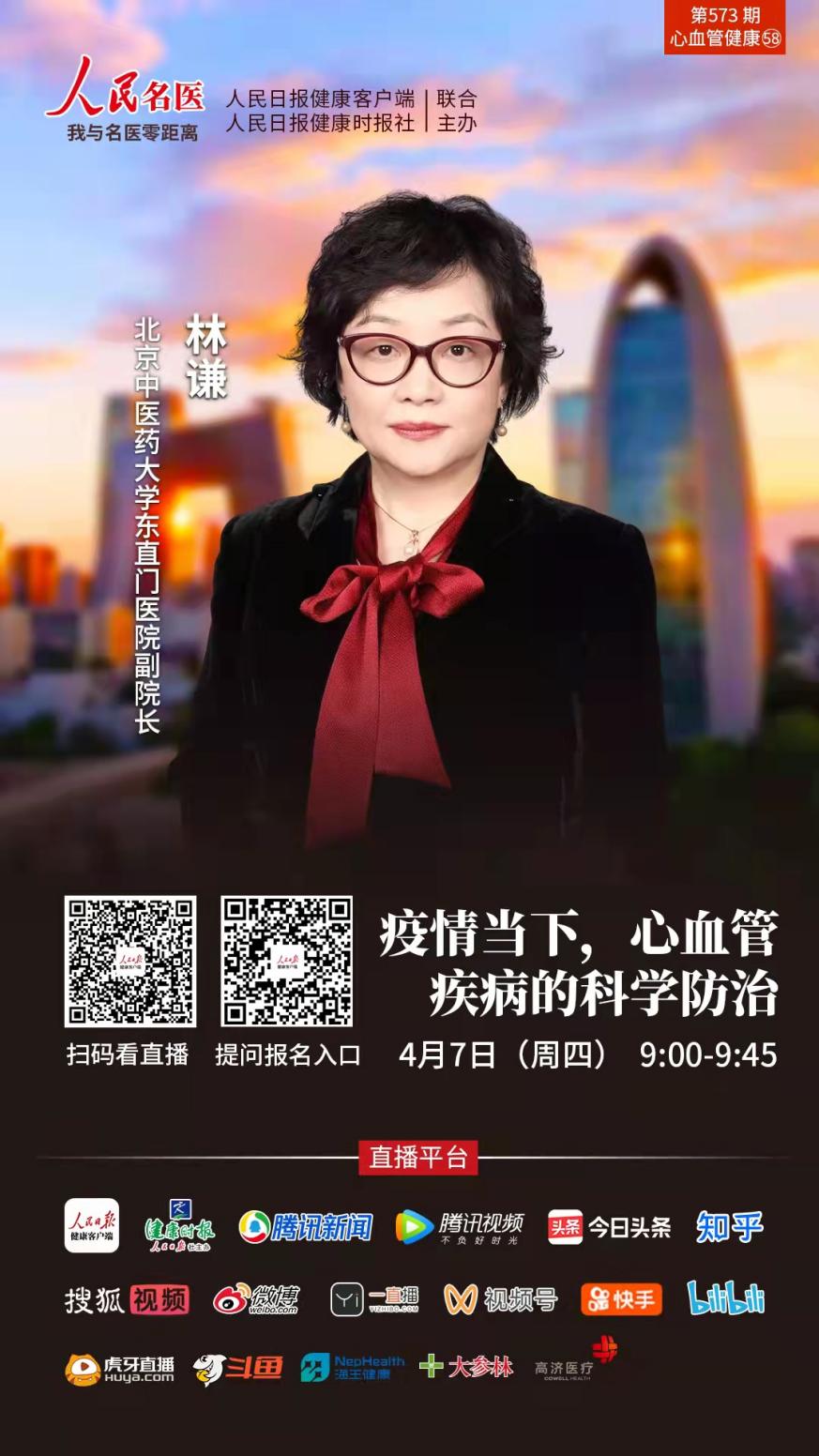 4月7日上午9:00~9:45,以嶺藥業(yè)聯(lián)合人民日報健康客戶端策劃的世界健康日直播訪談節(jié)目《疫情當下,心腦血管疾病的科學防治》,特別邀請到北京中醫(yī)藥大學東直門醫(yī)院副院長林謙為大家進行權(quán)威解答!