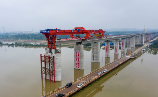據(jù)中鐵三局項(xiàng)目負(fù)責(zé)人紀(jì)常永介紹,蘄河特大橋196米連續(xù)梁為全線重難點(diǎn)工程之一,大跨度連續(xù)梁拱縱移段總體水平長度為185.5米,是國內(nèi)縱移段水平長度之最。面對工序復(fù)雜,質(zhì)量要求高,施工安全風(fēng)險大等困難,項(xiàng)目部成立了安全質(zhì)量工期攻關(guān)小組,實(shí)行24小時作業(yè),采用異位拼裝整體縱移施工方案,蘄河特大橋連續(xù)梁以八天一節(jié)段的施工進(jìn)度快速推進(jìn),保證了節(jié)點(diǎn)工期按期實(shí)現(xiàn)。