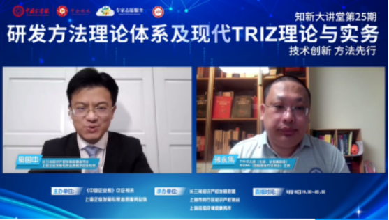5月18日,中企視訊《知新大講堂》第25期節(jié)目線上開播。RDMI(國際研發(fā)方法協(xié)會)主席、TRIZ五級大師(全球最高級)、DFSS(六西格瑪設計)黑帶大師孫永偉博士做客中企視訊直播間,長三角知識產(chǎn)權發(fā)展聯(lián)盟秘書長郭國中擔任主持人,介紹了現(xiàn)代TRIZ理論體系的組成以及它在技術創(chuàng)新、新產(chǎn)品研發(fā)、專利布局、規(guī)避、挖掘等專利戰(zhàn)略、運用創(chuàng)新大幅降本等方面的重要作用。