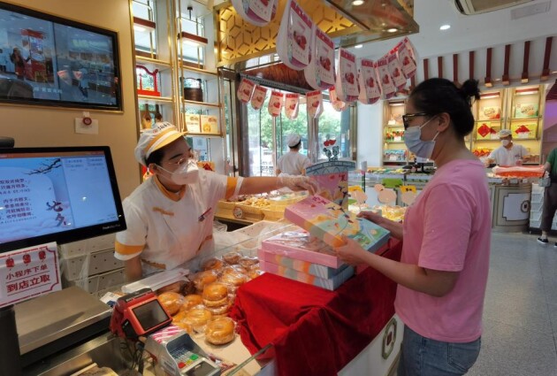 “去年這個巧果禮盒就特別火,差點兒沒搶到,這不是又快到七夕節(jié)了嘛,所以今天門店還沒開門我就過來了,就是奔著這個禮盒來的?!痹诒本┑鞠愦逦挥跂|直門的“東城食尚店”里,一位女孩正在挑選著“巧果”糕點禮盒。據(jù)工作人員介紹,今年為了方便顧客選購,北京稻香村還上線了微信小程序,顧客可以通過線上下單巧果禮盒等產(chǎn)品,到店取貨,節(jié)約購買時間。