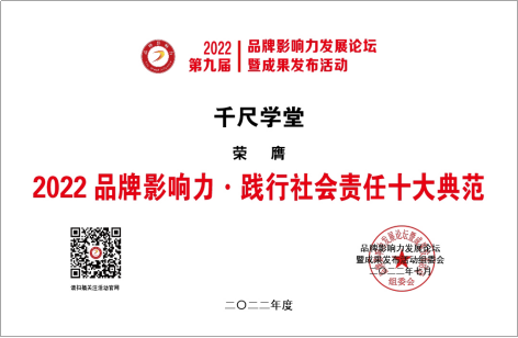 近日,由《發(fā)現(xiàn)品牌》欄目組、對外經(jīng)濟(jì)貿(mào)易大學(xué)中國國際品牌戰(zhàn)略研究中心、《中國企業(yè)報》集團(tuán)主辦的2022品牌影響力發(fā)展論壇暨成果發(fā)布活動正式舉辦?;顒右浴按罅Πl(fā)展品牌戰(zhàn)略促進(jìn)經(jīng)濟(jì)高質(zhì)量發(fā)展”為主題。圍繞中國品牌創(chuàng)建行動,培育新型消費(fèi),實(shí)施領(lǐng)航企業(yè)培育工程,促進(jìn)專精特新小巨人企業(yè)培育等內(nèi)容展開分析探討。在著重推介具有優(yōu)秀成長性或影響力的品牌環(huán)節(jié)中,千尺學(xué)堂榮膺“2022品牌影響力·十大新銳企業(yè)”、“2022品牌影響力·踐行社會責(zé)任十大典范”兩項大獎。