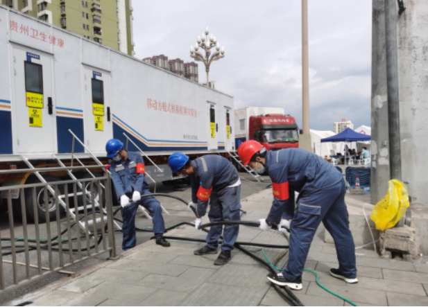 貴州電網(wǎng)于9月3日接到任務之時,用30分鐘組建青年突擊隊,10小時完成6臺綜合配電箱及360米低壓電纜接入,為11臺移動方艙式核酸檢測實驗室用電提供“雙保險”;戰(zhàn)役打響后,多支青年突擊隊對將軍山醫(yī)院等32個疫情防控醫(yī)療機構及筑城廣場、金陽奧林匹克體育中心、花溪大學城等48個核酸樣本集中檢測方艙實現(xiàn)拉線送電和全日現(xiàn)場值守。