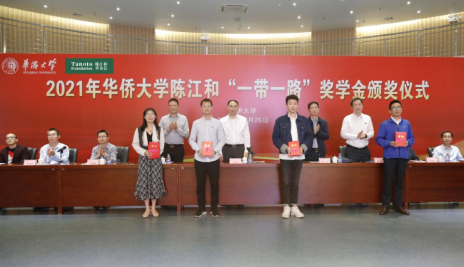 2021年,為培養(yǎng)海上絲綢之路建設(shè)人才,吸引“一帶一路”沿線國家優(yōu)秀華僑華人學(xué)生來華學(xué)習(xí),北京陳江和公益資金會(huì)資助2000萬元,在華僑大學(xué)設(shè)立了陳江和“一帶一路”獎(jiǎng)學(xué)金。