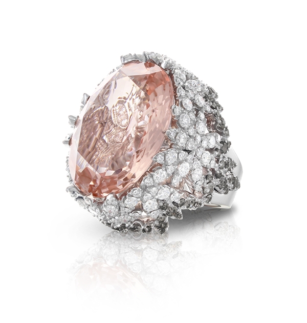 Bon Ton系列是Pasquale Bruni的經(jīng)典標(biāo)志性系列作品,通過“五瓣花朵”的標(biāo)志造型,詮釋代表女性優(yōu)雅、和諧的氣質(zhì)和精致的生活方式。獨家專利的“Bon Ton切工”,以精致的切割比例和切面的柔軟花瓣為象征,在寶石中心形成圓形花蕊。
