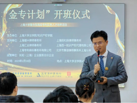 2月19日,上海大學(xué)復(fù)合型高級專利實務(wù)人才培養(yǎng)項目“金專計劃”首期培訓(xùn)正式啟動,來自計算機科學(xué)與技術(shù)、微電子學(xué)、物理學(xué)、機械設(shè)計制造及其自動化、信息與計算科學(xué)、電氣工程及其自動化、應(yīng)用化學(xué)、生物工程、數(shù)學(xué)與應(yīng)用數(shù)學(xué)、新能源科學(xué)與工程、智能制造工程等理工專業(yè)的首期50名學(xué)員參加了開班儀式。