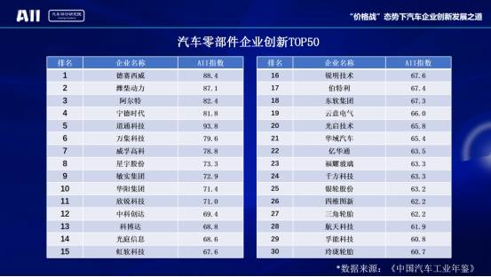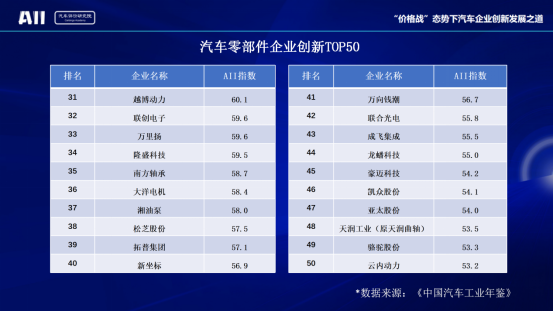 中國(guó)汽車(零部件)企業(yè)創(chuàng)新TOP50