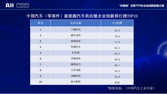 中國(guó)汽車(零部件)新能源汽車供應(yīng)鏈企業(yè)創(chuàng)新排行榜TOP10