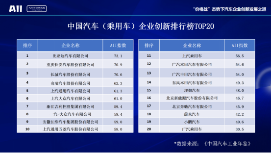 中國(guó)汽車(乘用車)企業(yè)創(chuàng)新排行榜TOP20