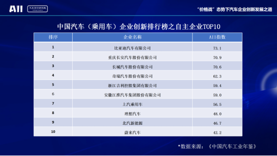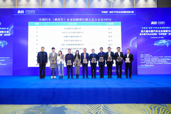 中國(guó)汽車(乘用車)企業(yè)創(chuàng)新排行榜之自主企業(yè)TOP10