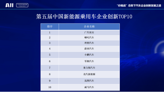中國(guó)新能源乘用車企業(yè)創(chuàng)新TOP10