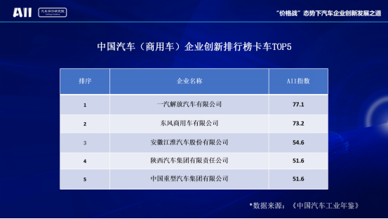 中國(guó)汽車(商用車)企業(yè)創(chuàng)新排行榜卡車TOP5