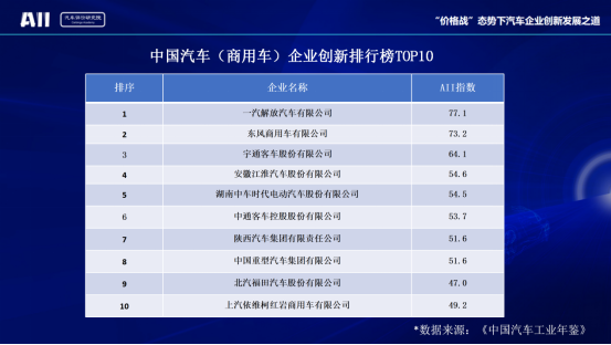 中國(guó)汽車(商用車)企業(yè)創(chuàng)新排行榜TOP10
