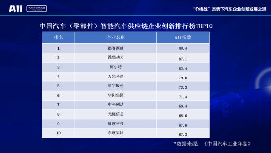 中國(guó)汽車(零部件)智能汽車供應(yīng)鏈企業(yè)創(chuàng)新排行榜TOP10