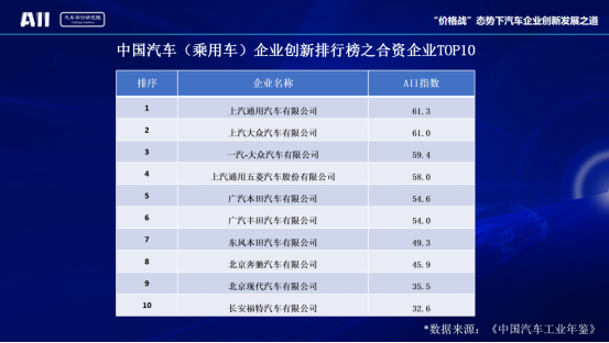 中國(guó)汽車(乘用車)企業(yè)創(chuàng)新排行榜之合資企業(yè)TOP10
