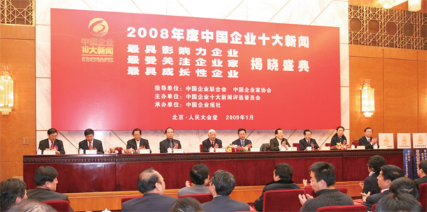 2009年1月,北京人民大會(huì)堂,2008年度中國企業(yè)十大新聞發(fā)布活動(dòng)隆重舉辦。