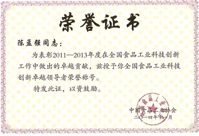 1987年,陳孟強參與起草了《保國際金牌奪國際金獎》的專題報告,并在全國輕工行業(yè)工作會議上進行了匯報。