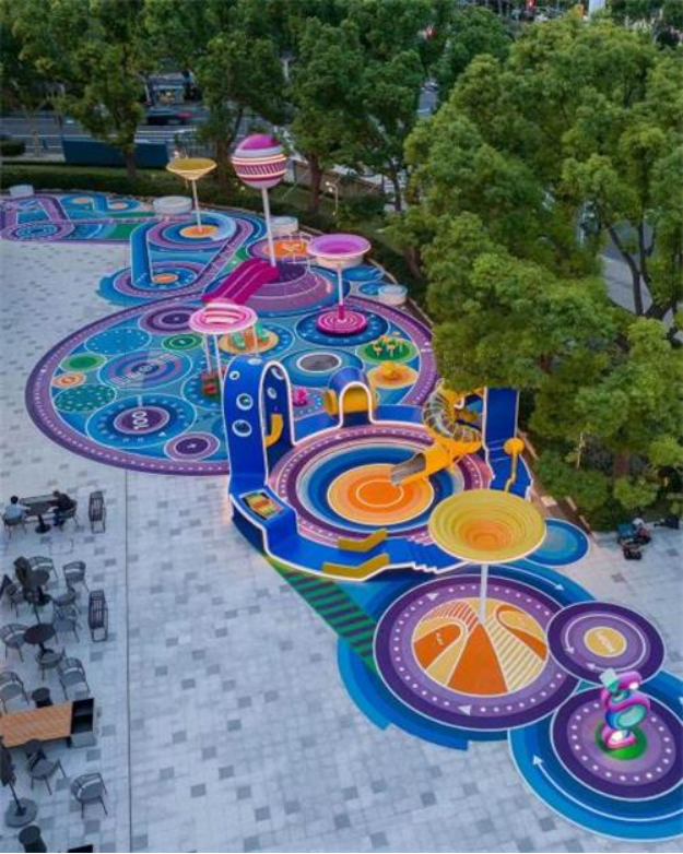 陸家嘴集團(tuán)立足于“兒童友好”理念,以想象中的“糖果世界”為靈感的項(xiàng)目,借助糖果手杖、棒棒糖、冰棍等兒童喜愛的糖果主題,搭建了一條條亮眼且生動(dòng)的彩虹結(jié),通過巧妙結(jié)合現(xiàn)場(chǎng)的L形地形,不僅承載著多元的游戲活動(dòng),而且互相交錯(cuò),蜿蜒穿插形成了一系列互動(dòng)性、可玩性、娛樂性極高的游玩動(dòng)線。無(wú)論是1歲左右的嬰幼兒,還是14歲步入青春期,不同年齡段的孩子都可以輕松在這里找到愉快且富有挑戰(zhàn)性的游戲項(xiàng)目。