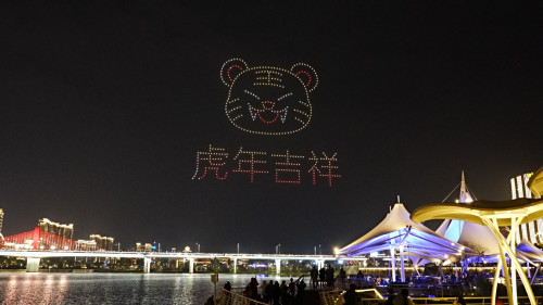 當晚,500架無人機在漳州九龍江畔龍江水幕廣場伴隨著慷慨激昂的水幕秀-片仔癀專場的音樂,開始起飛,整齊變換燈光,以夜空為幕,“熒光”為筆,變換出各式各樣的圖案。隨著美麗的漳州市花“水仙花”緩緩擺動,“孔明燈”帶著片仔癀的美好祝愿飄蕩在夜幕,“祝全市人民元宵快樂”“虎年吉祥”等字樣陸續(xù)出現(xiàn),點燃了在場所有人的情感共鳴,讓現(xiàn)場立刻引起一陣陣歡呼聲。精彩的表演吸引了眾多市民和游客駐足觀看、拍攝,并記錄每個精彩的瞬間。