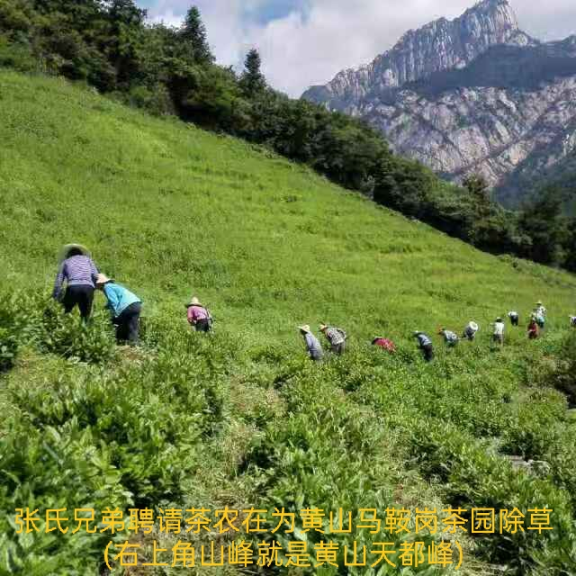 精神抖擻的張建洪和身材魁梧張建軍與我聊得非常投機,對于制茶,他倆如數(shù)家珍,娓娓道來,我是聽得津津有味,興致超然:黃山毛峰生長在北緯30°08的位置,此區(qū)域地質地貌、物種礦藏、水文氣候等復雜多樣,地球上神秘現(xiàn)象也比較集中,自然和人文景觀更加密集。位于亞熱帶和溫帶的過度地帶,降水相對比較豐沛,植物茂盛。黃山地區(qū),由于山高,土質好,溫暖濕潤,“晴時早晚遍地霧,陰雨成天滿山云”,云霧縹緲,很適合茶樹生長,因而葉肥汁多,經久耐泡;加上黃山遍生蘭花,采茶之際,正值山花爛漫,花香的熏染,使黃山茶葉格外清香,風味獨具,而且產茶歷史悠久。他倆利用這得天獨厚的地理優(yōu)勢——黃山景區(qū)天都峰前山的馬鞍崗茶園,歷史上曾稱之為黃山毛峰“四大名家”之一。此茶園海拔600-800米,氣候溫涼、雨量充沛、土染深厚肥沃,有機質含量高,遠離工業(yè)污染,空氣清新,水質潔凈,非常適合開發(fā)名優(yōu)茶。采自此正宗高山的生態(tài)綠茶,香溢、味醇、形美、耐沖泡,含有豐富的營養(yǎng)成分及微量元素;馬鞍崗高山茶更具有生津止渴、提神醒腦、美容養(yǎng)顏、明目、清熱等解毒之功效,是名副其實的綠色食品茶。