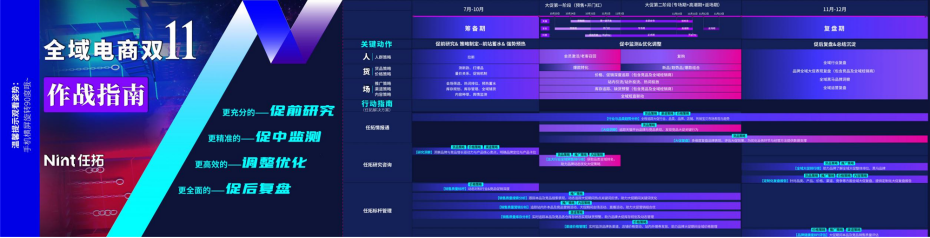 Nint任拓首次發(fā)布《雙11全域電商增長作戰(zhàn)圖》,從大促籌備期、大促期到復盤期三大階段出發(fā),梳理了品牌商家核心運營策略,為品牌商家提供明確的行動指南。
