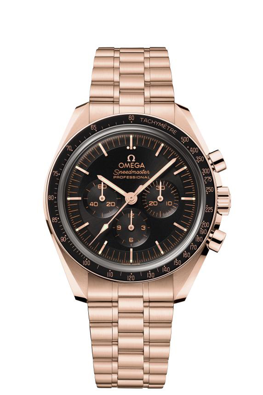 歐米茄研發(fā)的Sedna 18K金由金、銅和鈀三種金屬熔合而成,名字源于太陽系中表面顏色最紅的Sedna小行星,銅的巧妙比例讓Sedna金色澤更柔和雅致,稀有金屬鈀則讓微紅的色澤更加穩(wěn)定,歲月更迭間盡顯華貴雅致風(fēng)范。
