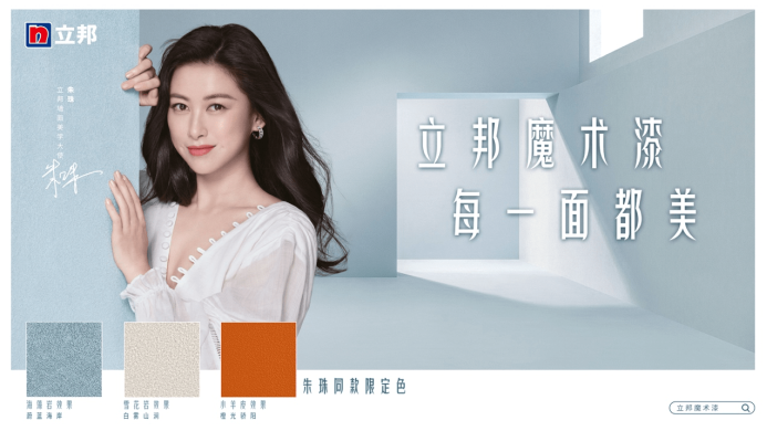 朱珠擔任立邦墻面美學大使,并發(fā)布立邦魔術(shù)漆三款限定色