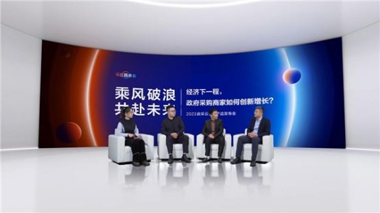 在政采云產(chǎn)品發(fā)布會(huì)“采云圓桌會(huì)”上,來自聯(lián)想集團(tuán)中國區(qū)商用大客戶政采電商業(yè)務(wù)負(fù)責(zé)人宿博、浙江時(shí)代新銳科技有限公司董事長兼總經(jīng)理王翔、杭州商廬貿(mào)易有限公司總經(jīng)理歐邦海、政采云有限公司商家業(yè)務(wù)部總經(jīng)理王銳敏共同探討了“經(jīng)濟(jì)下一程,政府采購商家如何創(chuàng)新增長”的話題,各自分享了數(shù)字化轉(zhuǎn)型過程中的經(jīng)驗(yàn)。