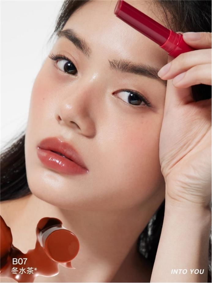 B05流淌摩登,焦糖融化般的色澤使整個(gè)妝容更具氛圍感,讓人欲罷不能;B07冬水茶更顯清冷,微暗的色調(diào)與鏡面的質(zhì)感形成恰到好處的反差,打造別具一格的春日妝容;B02上唇清通,從水光鏡面后若隱若現(xiàn)地透出淡淡的粉色,仿佛剛剛經(jīng)過雨水洗禮的水蜜桃,透著無限的自在活力。