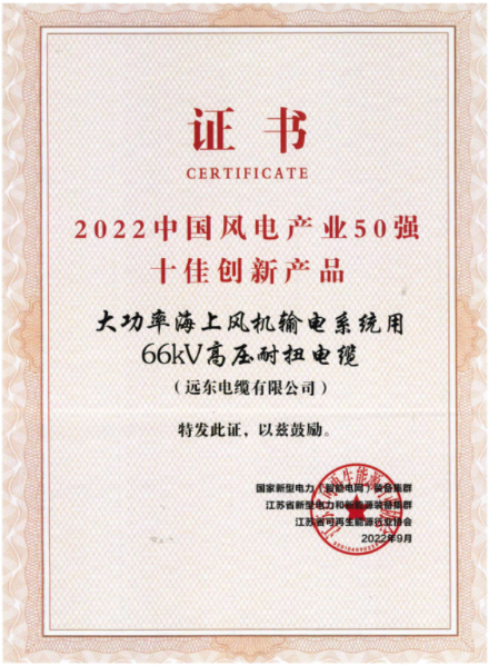 該系列產(chǎn)品主要應(yīng)用于海上大功率風(fēng)電機(jī)組電力傳輸,不僅可以有效地提升傳輸容量和效率,降低系統(tǒng)損耗,還可以實(shí)現(xiàn)全壽命周期內(nèi)安全可靠運(yùn)行,是大功率海上風(fēng)電機(jī)組亟需的核心部件,也是未來(lái)海上大功率風(fēng)力發(fā)電技術(shù)發(fā)展趨勢(shì)。并成功應(yīng)用于華電臺(tái)州玉環(huán)、福清興化灣等多個(gè)海上風(fēng)電場(chǎng)等項(xiàng)目,還被授予了國(guó)家工信部頒發(fā)的“制造業(yè)單項(xiàng)冠軍”、2022中國(guó)風(fēng)電產(chǎn)業(yè)50強(qiáng)“十佳創(chuàng)新產(chǎn)品”等多項(xiàng)榮譽(yù),獲得了從國(guó)家到行業(yè)的高度認(rèn)可,夯實(shí)了公司在風(fēng)電電纜行業(yè)的領(lǐng)軍地位。